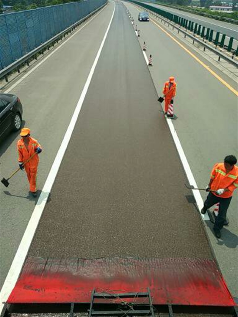 應用范圍:     砂封層主要應用于高速公路,一、二級公路瀝青路面的預防性養(yǎng)護。可以進行美化路緣、路肩施工。經過砂封層施工后可以改變新舊路面的外觀及顏色。施工說明:砂封層是一種層鋪的施工工藝。采用同步碎石封層設備將聚合物改性粘結材料和骨料金剛砂同時撒布施工的一種施工工藝。粘結材料應選擇高濃高粘且具有一定滲透型和還原性。骨料需選擇耐磨的金剛砂。技術特點:(1)常溫施工,無需加熱,節(jié)能環(huán)保。(2)用來解決瀝青路表面瀝青老化出現(xiàn)的貧油狀況。(3)解決原路面出現(xiàn)的麻面、松散掉粒、輕微裂縫等現(xiàn)象。(4)新路面可以起到防水的作用。(5)增加路面摩擦系數(shù)和耐磨性能。施工工藝:封閉交通→清理路面→病害處理→砂封層施工→養(yǎng)生→開放交通